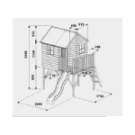 Wymiary domku Jerzyk: Wysokość platformy nad powierzchnią ziemi – 80 cm Długość podstawy domku po obrysie zewnętrznym – 175 cm Szerokość podstawy – 226 cm Wysokość domku Jerzyk – 250,5 cm