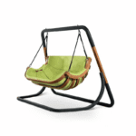 Stelaż fotela składa się z modrzewia syberyjskiego oraz metalowych elementów. To połączenie nadaje mu niezwykle modny, nowoczesny wygląd. Stalowe elementy są gięte na gorąco a ich powierzchnia jest malowana proszkowo. Ta technika malowania zapewnia im wyjątkową trwałość i odporność na korozję w wyniku działania czynników atmosferycznych. Dzięki temu możesz być pewien, że Twój fotel wiszący podwójny ogrodowy nawet po wielu latach w ogrodzie będzie się prezentował jak nowy, a farba nie odpryśnie.